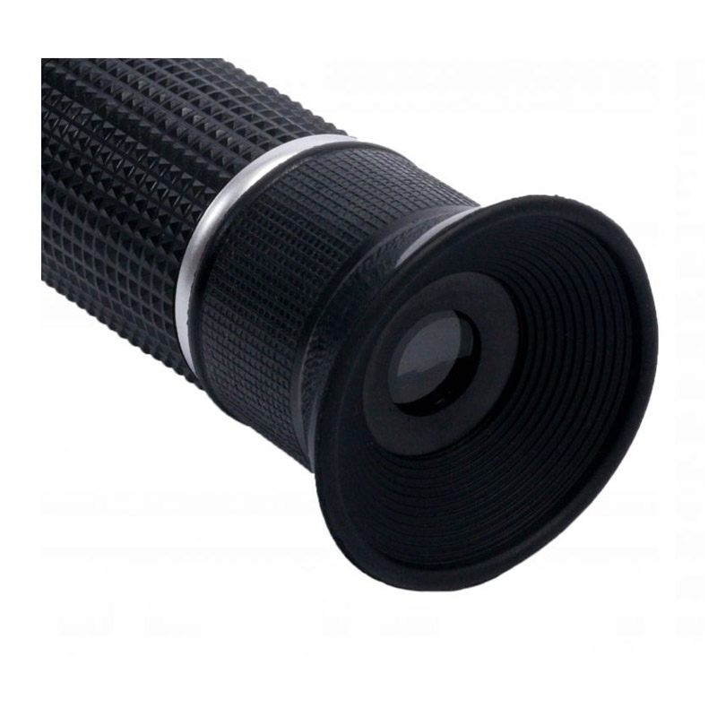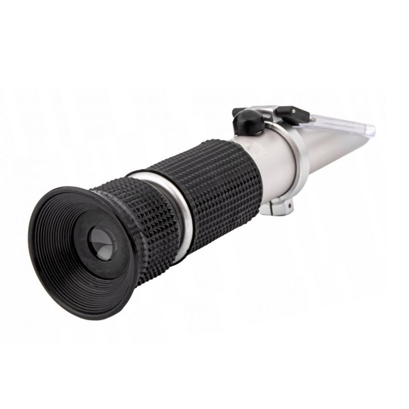 Στρέψτε το διαθλασίμετρο προς την πηγή φωτός και κοιτάξτε μέσα από το σκόπευτρο, διαβάστε την τιμή στην κατάλληλη κλίμακα στα σύνορα της λευκής και μπλε περιοχής (φως / σκιά περιγράμματος). Ρυθμίζοντας την ευκρίνεια, όταν η εικόνα μέτρησης είναι θολή και αδύνατη η ανάγνωση, ρυθμίστε την εστίαση χρησιμοποιώντας το κουμπί που βρίσκεται πίσω από το φακό.