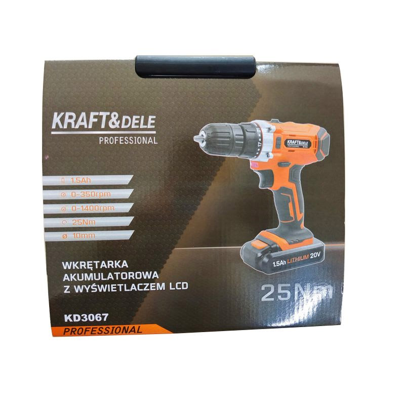 Το επαναφορτιζόμενο δραπανοκατσάβιδο, από την εταιρία Kraft&Dele, διακρίνεται από τον εργονομικό σχεδιασμό, την αποδεδειγμένη και συμπαγή κατασκευή και την υψηλή αντοχή. Έχει διακόπτη 2 ταχυτήτων, στην πρώτη μπορεί να ρυθμιστεί στο εύρος 0 – 350 σ.α.λ. και στη δεύτερη από 0 – 1100 σ.α.λ. Μια πρόσθετη λυχνία LED ανάβει και διευκολύνει την ακριβή εργασία σε συνθήκες χαμηλού φωτισμού. Μπορεί να χρησιμοποιηθεί ως πλήρως λειτουργικό τρυπάνι ή κατσαβίδι.