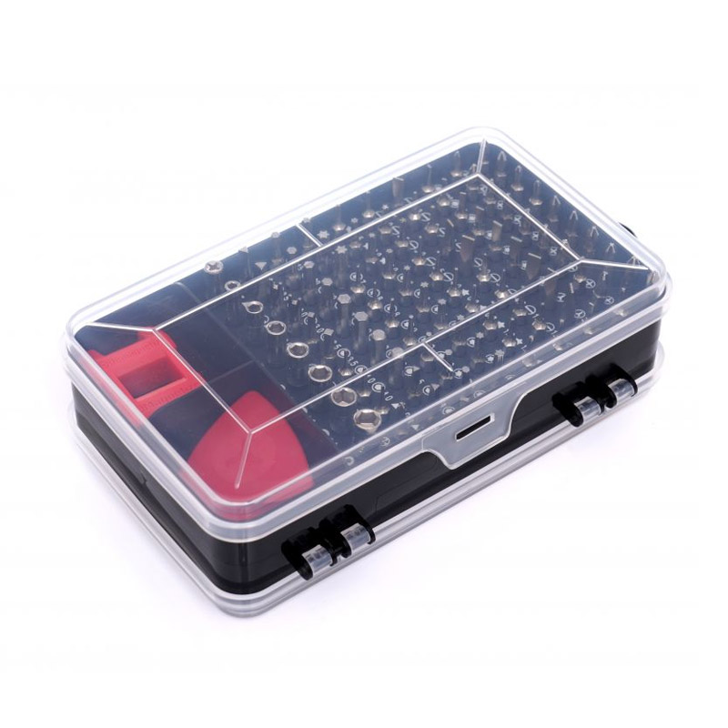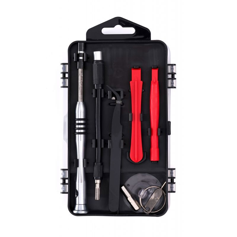 Το σετ, από την εταιρία Kraft&Dele, είναι απαραίτητο σε κάθε εργαστήριο καθώς και για μικρές επισκευές στο σπίτι. Αποτελείται από κατσαβίδι με εργονομική λαβή καλυμμένη με αντιολισθητικό λάστιχο, ευέλικτη επέκταση, μαγνητιστή / απομαγνητιστή, βεντούζα για την αφαίρεση γυαλιού, καρφίτσα για την εξαγωγή καρτών SIM, προσαρμογέα κατσαβιδιών, γωνιακό ανοιχτήρι θήκης, ανοιχτήρια θήκης, τσιμπιδάκι και 100 μύτες ακριβείας.