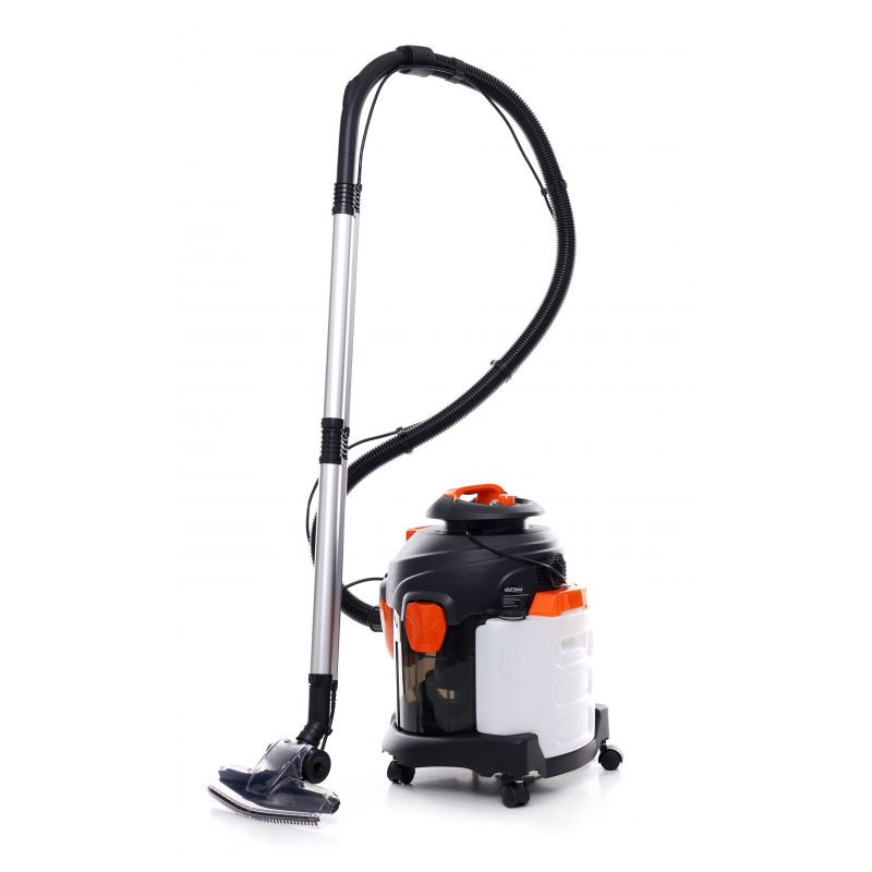 Η ηλεκτρική σκούπα διαθέτει μια εύχρηστη κλειστή δεξαμενή καθαρού νερού κατασκευασμένη από ημιδιαφανές πλαστικό που σας επιτρέπει να ελέγχετε τη στάθμη του νερού. Η συσκευή είναι εξοπλισμένη με τη λειτουργία WATER STOP – απενεργοποιεί αυτόματα την τουρμπίνα της ηλεκτρικής σκούπας όταν το νερό στη δεξαμενή βρώμικου νερού φτάσει στο μέγιστο επίπεδο.