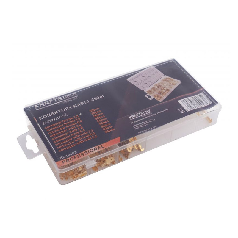 Το σετ, από την εταιρία Kraft&Dele, αποτελείται από 450 ακροδέκτες, οι οποίοι χρησιμοποιούνται για τη σύνδεση καλωδίων με ηλεκτρικές συσκευές, άλλα καλώδια κλπ.