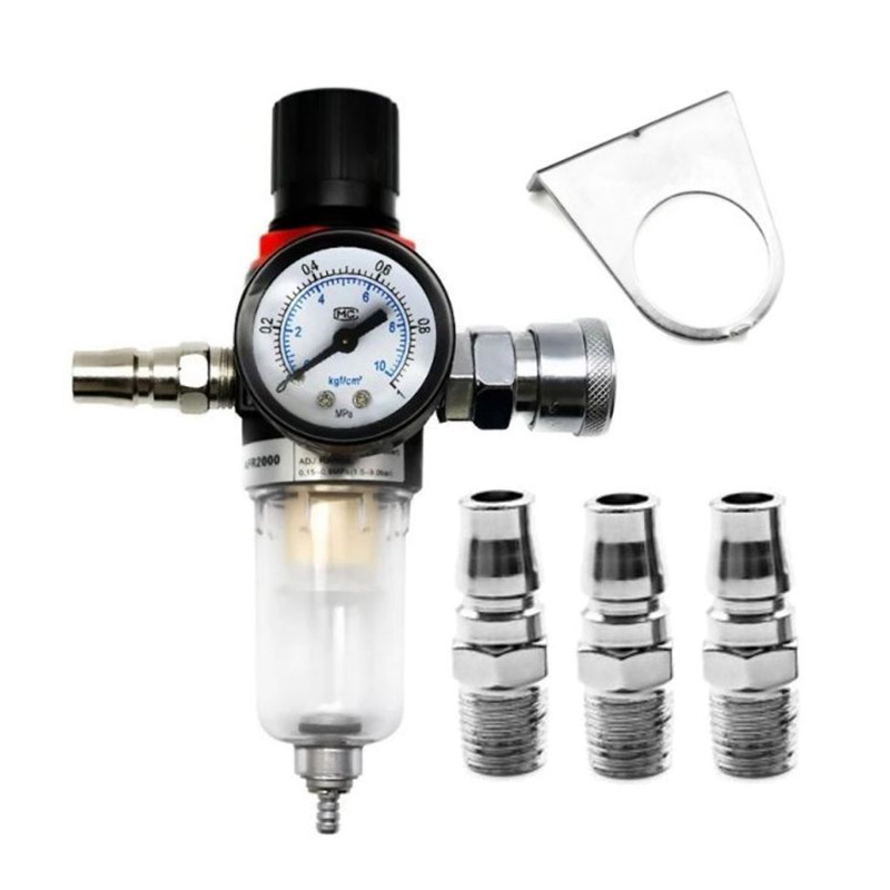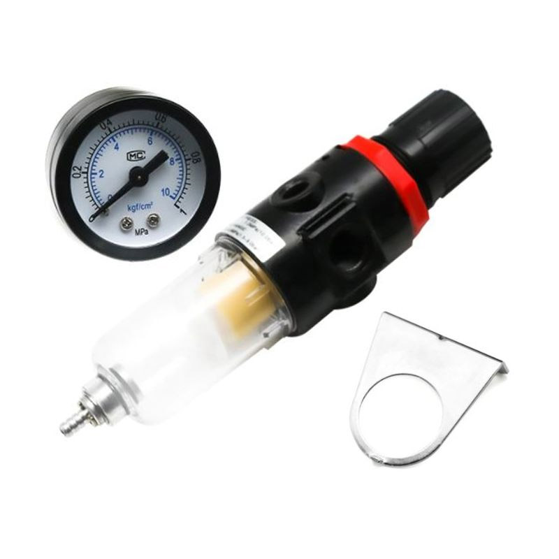 Διαθέτει μανόμετρο ακριβείας με διπλή ράβδο και μέτρηση σε PSI στο γυάλινο κάλυμμα, που επιτρέπει τον σταθερό έλεγχο της πίεσης. Φιλτράρει, αφυδατώνει και καθαρίζει τον αέρα από ακαθαρσίες.