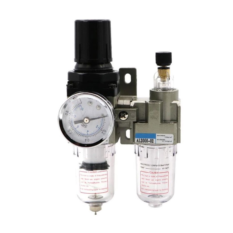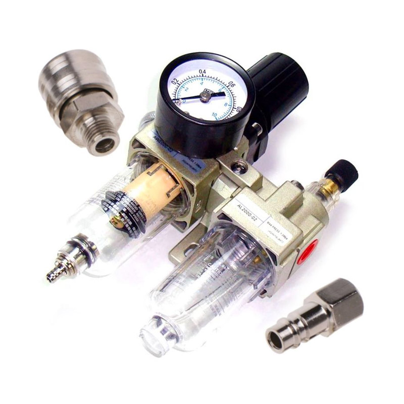 Διαθέτει μανόμετρο ακριβείας με διπλή ράβδο και μέτρηση σε PSI στο γυάλινο κάλυμμα, που επιτρέπει τον σταθερό έλεγχο της πίεσης. Φιλτράρει, αφυδατώνει και καθαρίζει τον αέρα από ακαθαρσίες.