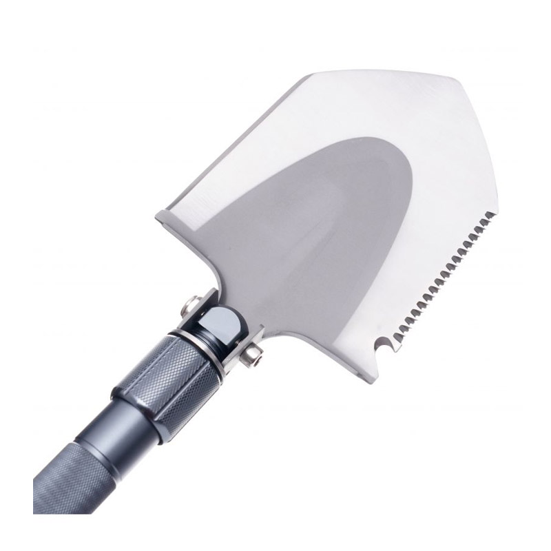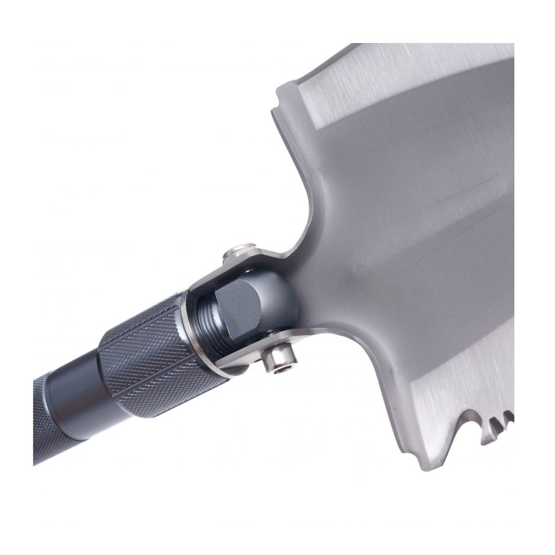 Είναι ελαφρύ και μπορεί να αποθηκευτεί οπουδήποτε χάρη στην εύχρηστη θήκη στην οποία κάθε στοιχείο έχει τη θέση του. Το φτυάρι χαρακτηρίζεται από μια ενισχυμένη κεφαλή από σκληρυμένο ατσάλι, που είναι αρκετά δυνατή σε κάθε περίπτωση. Η κεφαλή είναι ρυθμιζόμενη από 0 – 180° (45, 90 και 180°), ενώ η γωνία επιφάνειας της λεπίδας μπορεί να αλλάξει σε πολλαπλά βήματα. Η λαβή αλουμινίου στρατιωτικής ποιότητας το καθιστά ελαφρύ και εύκολο στο χειρισμό.
