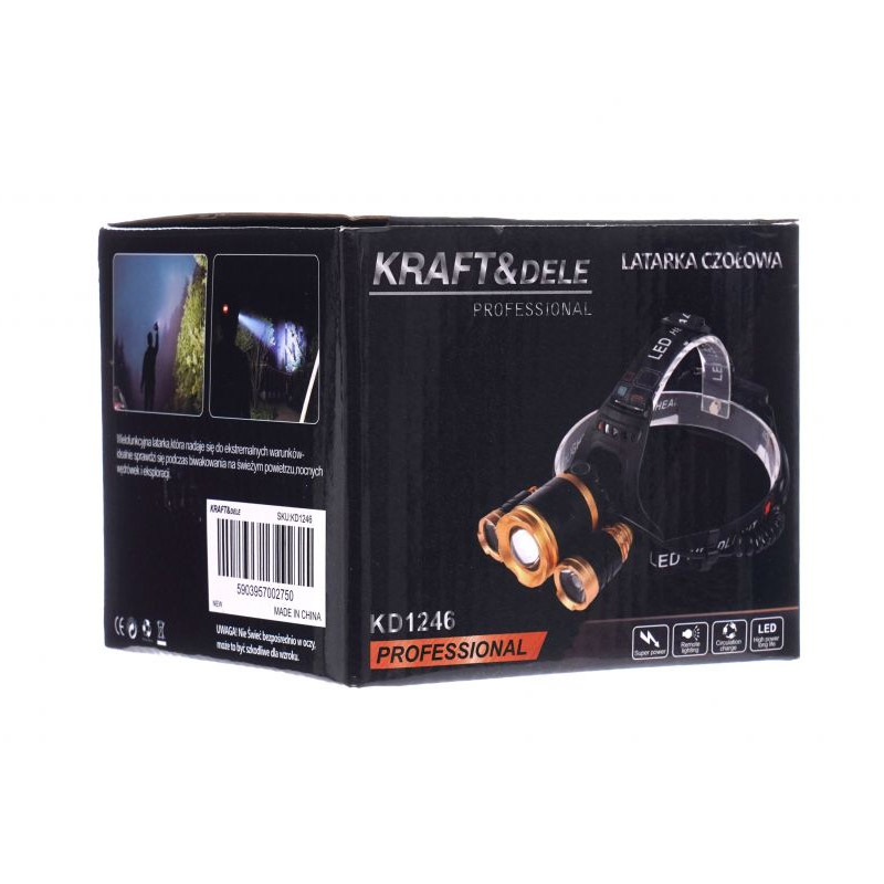 Ο φακός κεφαλής της εταιρείας Kraft&Dele θα σας διευκολύνει σε όλες τις χειρωνακτικές σας εργασίες. Διαθέτει πολύ ισχυρό προβολέα με τεχνολογία LED και 2 πλευρικές λυχνίες για ισχυρό φωτισμό. Ο προβολέας είναι κατασκευασμένος από αλουμίνιο για να είναι ανθεκτικός ενώ παράλληλα είναι εξαιρετικά ελαφρύς. Διαθέτει 4 ρυθμίσεις έντασης φωτός: ισχυρή, ασθενής, sos και strobe. Έχει λειτουργία ZOOM, δηλαδή αλλαγή του εστιακού μήκους του φωτός χάρη στην οποία είναι δυνατή η προσαρμογή του από μια στενή σε μια ισχυρή δέσμη φωτός που φωτίζει μια μεγάλη περιοχή εργασίας.
