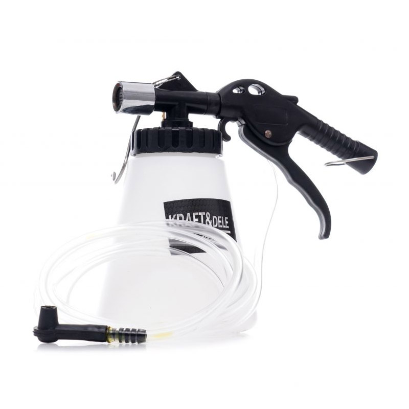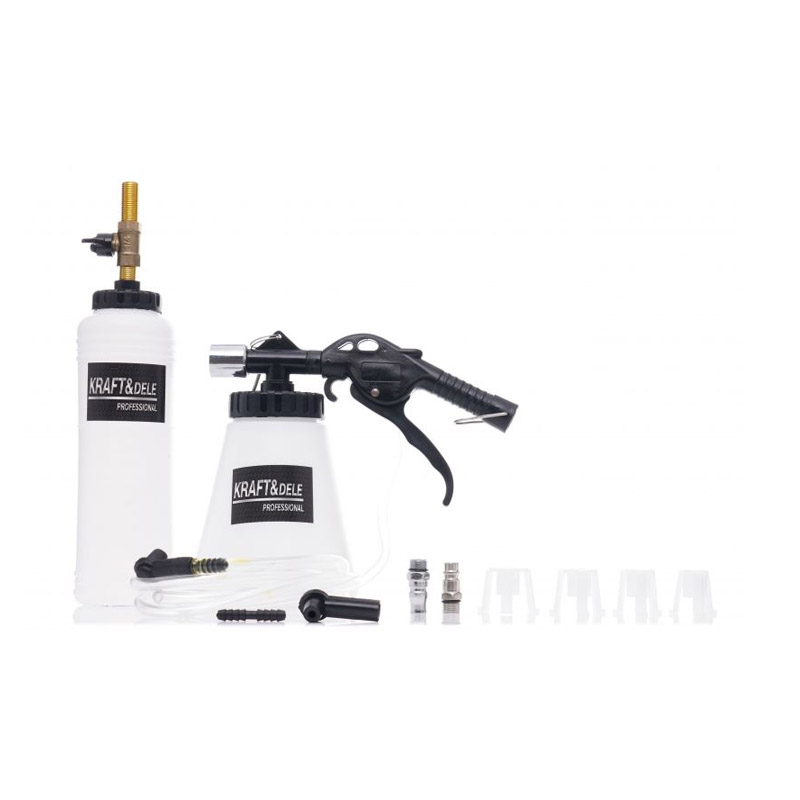 Το σετ, από την εταιρία Kraft&Dele, είναι ιδανικό για μηχανικούς σε συνεργεία αυτοκινήτων. Επιτρέπει την ανεξάρτητη αλλαγή του υγρού φρένων αναρροφώντας το από το σύστημα με τη βοήθεια της πίεσης του πνευματικού συστήματος. Επίσης, επιτρέπει την αποτελεσματική, γρήγορη και καθαρή εργασία χωρίς την ανάγκη χρήσης άλλου εξοπλισμού.
