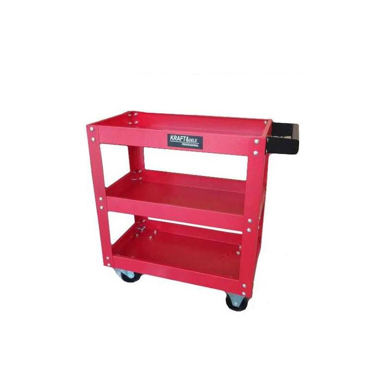 Ο εργαλειοφορέας, από την εταιρία Kraft&Dele, αποτελεί ιδανική λύση για την αποθήκευση εργαλείων και τη μεταφορά μικροαντικειμένων. Διαθέτει στιβαρή και ανθεκτική κατασκευή από ατσάλι υψηλής ποιότητας. Με 3 επίπεδα που προσφέρουν άφθονο αποθηκευτικό χώρο και μια χειρολαβή ώστε να τον μετακινείτε εύκολα. Έχει 4 τροχούς, εκ των οποίων οι δύο είναι περιστρεφόμενοι. Οι μεγαλύτεροι τροχοί πίσω και οι μικρότεροι μπροστά διευκολύνουν τους ελιγμούς ακόμα και με μεγάλα φορτία.