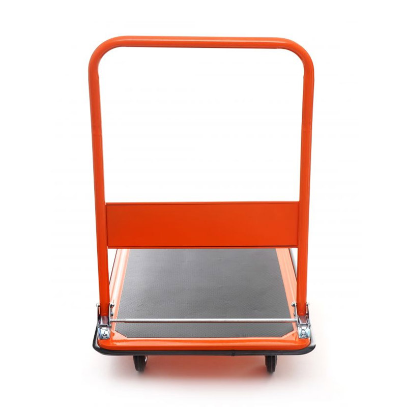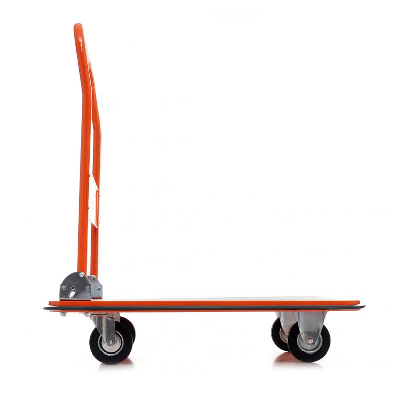 Το καρότσι, από την εταιρία Kraft&Dele, είναι ιδανικό για τη μεταφορά όλων των βαρέων και ογκωδών φορτίων. Κατασκευασμένο από υψηλής ποιότητας ατσάλι με βαφή πούδρας, αναδιπλούμενη λαβή και αντιολισθητική επιφάνεια με λάστιχο που απορροφά τους κραδασμούς στις άκρες. Είναι εξοπλισμένο με 4 τροχούς (2 τροχοί είναι περιστρεφόμενοι και 2 σταθεροί).
