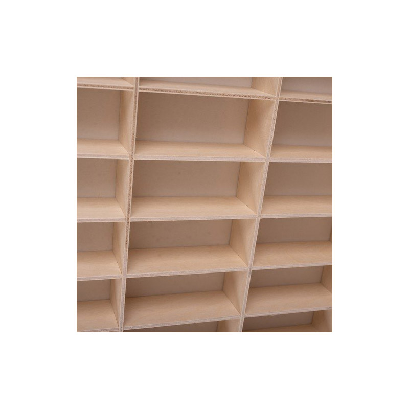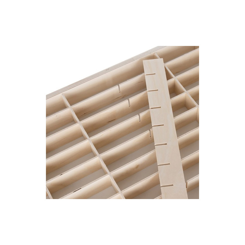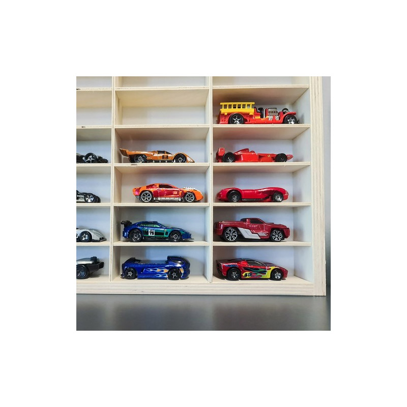 Το ράφι, από την εταιρία Kruzzel, είναι κατασκευασμένο από ξύλινο κόντρα πλακέ και διαθέτει 90 θέσεις για αυτοκινητάκια. Οι θέσεις μπορούν να αφαιρεθούν και να τροποποιηθούν ελεύθερα και μπορείτε να δημιουργήσετε το δικό σας μέγεθος. Είναι σχεδιασμένο για τοποθέτηση σε τοίχο, αλλά μπορεί επίσης να τοποθετηθεί και σε μια συρταριέρα ή ένα γραφείο. Συνοδεύεται από κιτ συναρμολόγησης και δύο γάντζους για κρέμασμα στον τοίχο.
