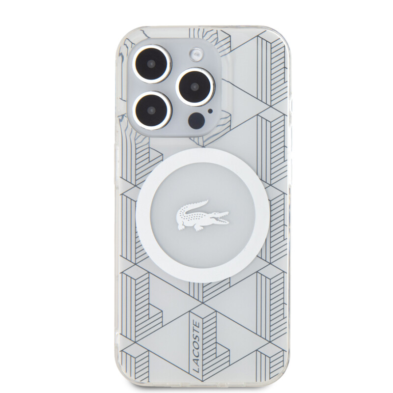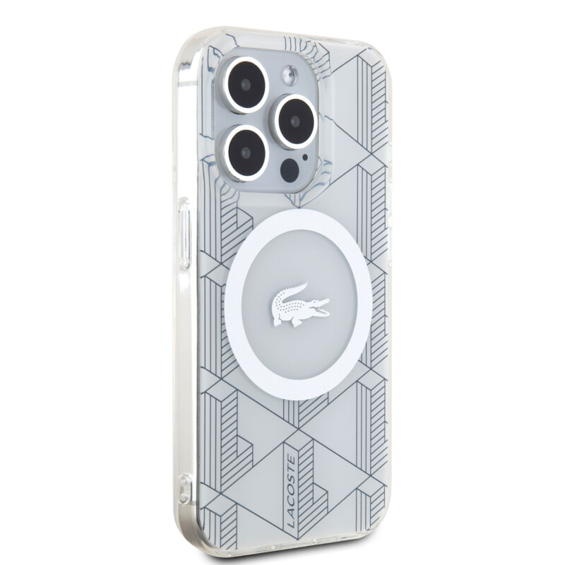 Lacoste Magsafe Monogram Croc Logo Hard Case Θήκη προστασίας από Σιλικόνη για iPhone 15 Pro Max (Farine/Silver)