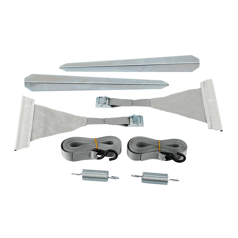Το σετ είναι universal και κατάλληλο για πολλές τέντες κασέτας ή bag awnings, όπως ενδεικτικά τύπου Thule, Fiamma και Dometic. Περιλαμβάνει 2 ελατήρια 10 cm, 2 πασσάλους 38 cm, 2 μακριούς ιμάντες 4,8 m με γάντζο και 2 υφασμάτινα τρίγωνα με μεταλλική αγκράφα, ώστε να προσφέρει πλήρη και πρακτική λύση πρόσδεσης. Τέλος, αποτελεί μια έξυπνη επιλογή για περισσότερη σταθερότητα, ασφάλεια και ηρεμία σε κάθε στάση και κάθε ταξίδι.