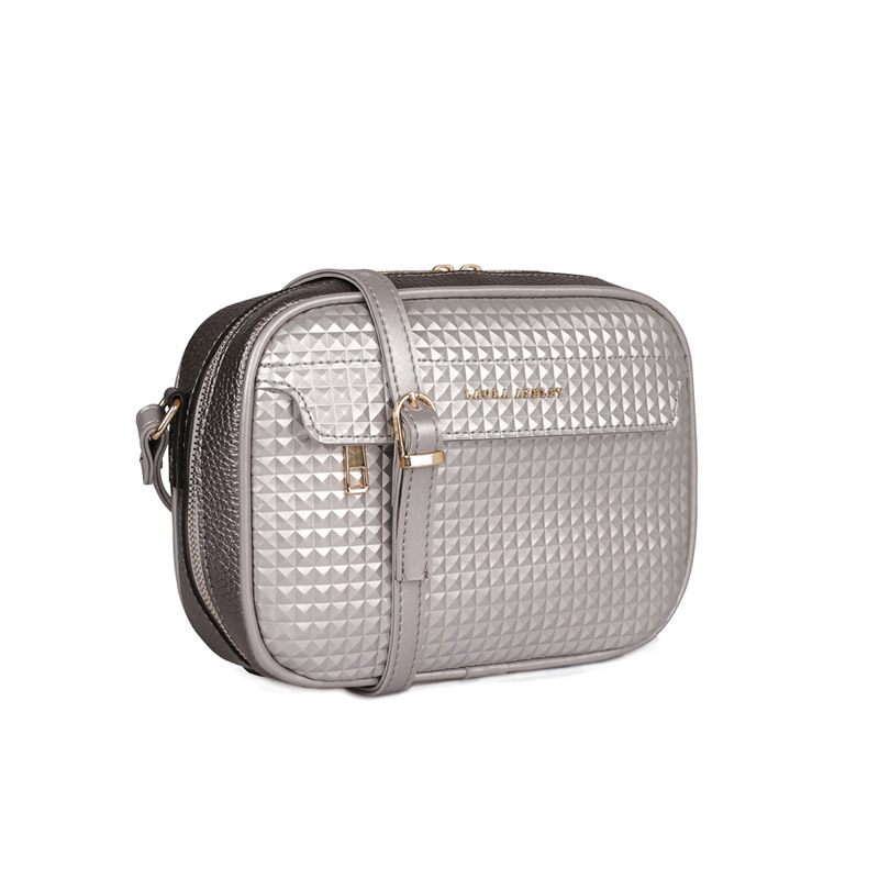 Γυναικεία Τσάντα με Διπλό Φερμουάρ Χρώματος Ασημί Pyramid Laura Ashley Furley 651LAS1589