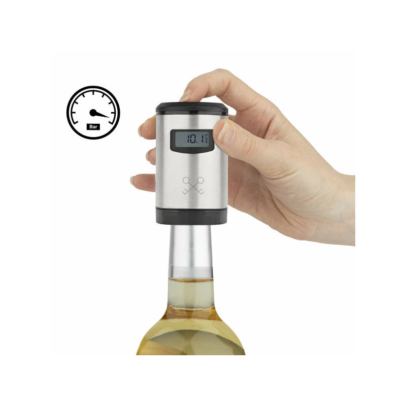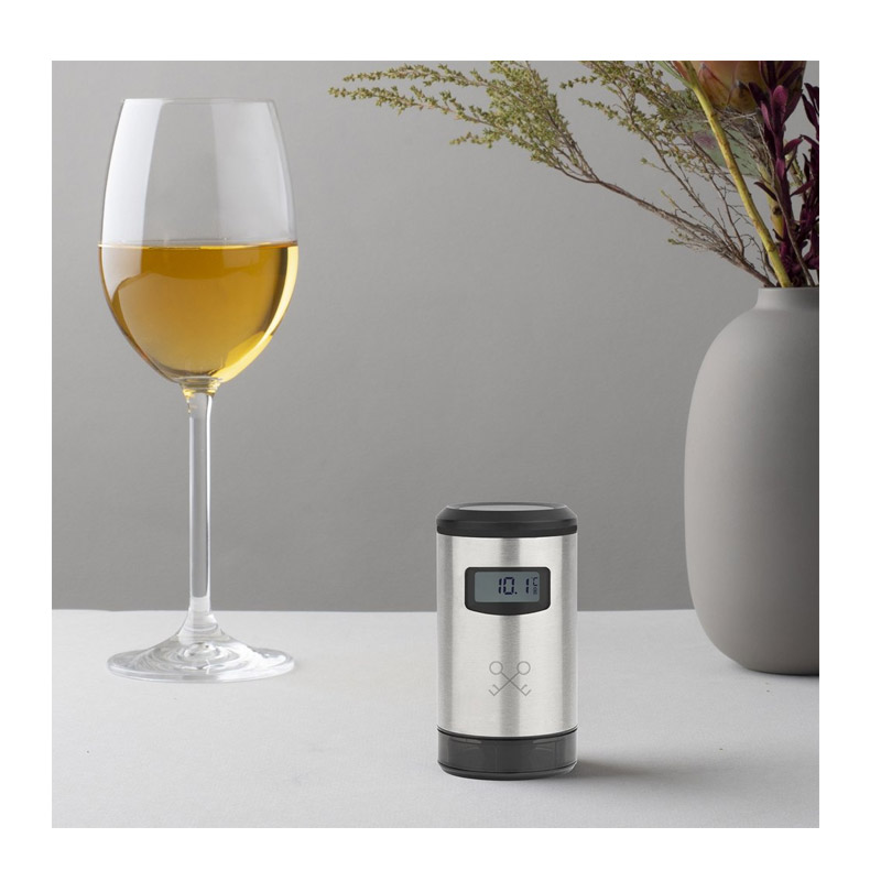 Η ηλεκτρική αυτόματη αντλία, από την εταιρία Les Petits Champs, είναι ιδανική για την εξαγωγή του αέρα από τα μπουκάλια κρασιού, για να διατηρούνται όλα τα αρώματα και η ποιότητα του κρασιού σας, μετά το άνοιγμα. Η τεχνολογία της ανιχνεύει την πίεση του αέρα στο μπουκάλι σας, παρέχοντάς του τέλεια αεροστεγανότητα σε δευτερόλεπτα. Η οθόνη LCD δείχνει τη θερμοκρασία και τον υπολειπόμενο χρόνο αποθήκευσης του κρασιού.