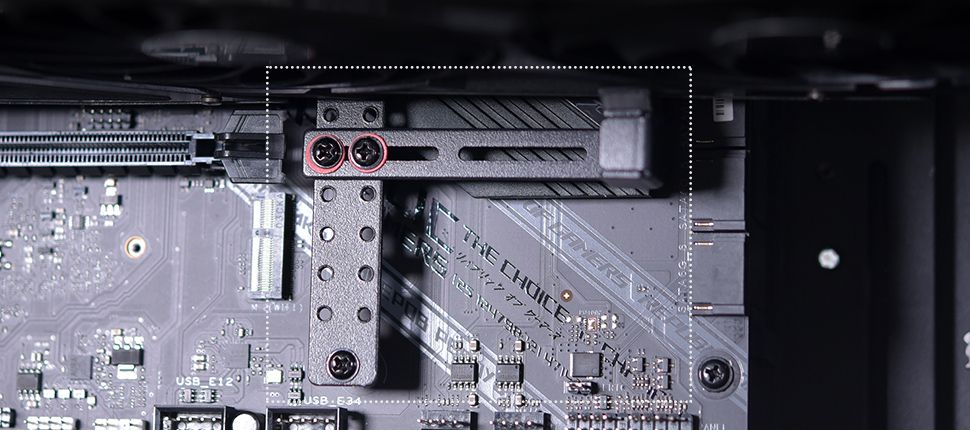 Τοποθετήστε το στήριγμα στη μητρική πλακέτα ATX ή E-ATX για να αποτρέψετε την πτώση των καρτών γραφικών στην κατασκευή και να προσδώσετε μια πιο ευχάριστη εμφάνιση στον υπολογιστή.