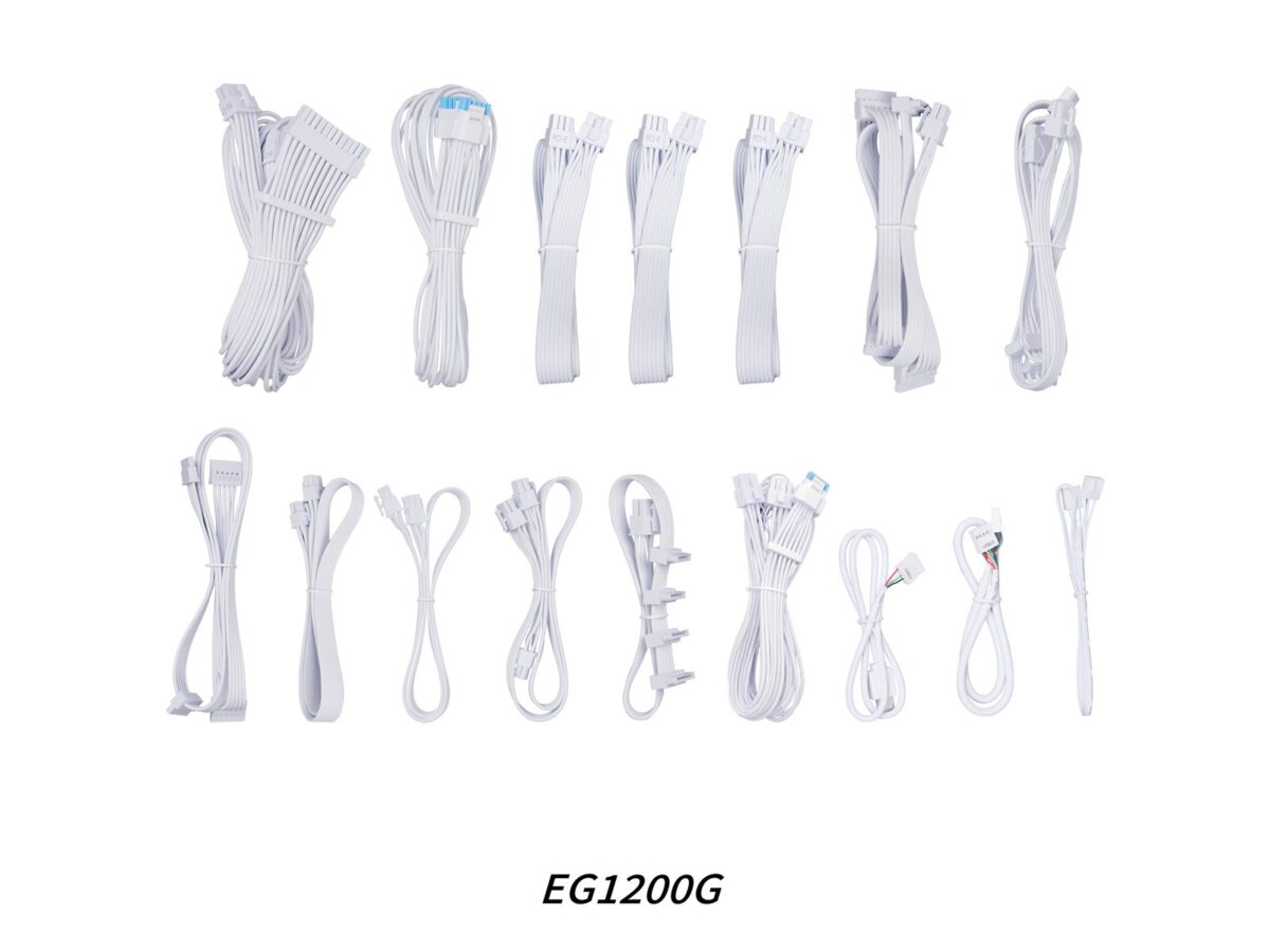 Το τροφοδοτικό είναι εξοπλισμένο με όλα τα καλώδια που διαθέτουν πλεγμένη υφή. Τα καλώδια 20+4pin, CPU, PCIe 6+2pin και 12V-2×6 είναι σχεδιασμένα με εύκολα ρυθμιζόμενες combs καλωδίων, εξασφαλίζοντας πολύ καθαρές καμπύλες και διαδρομές καλωδίων για μια αισθητικά ευχάριστη και οργανωμένη κατασκευή διπλού θαλάμου.
