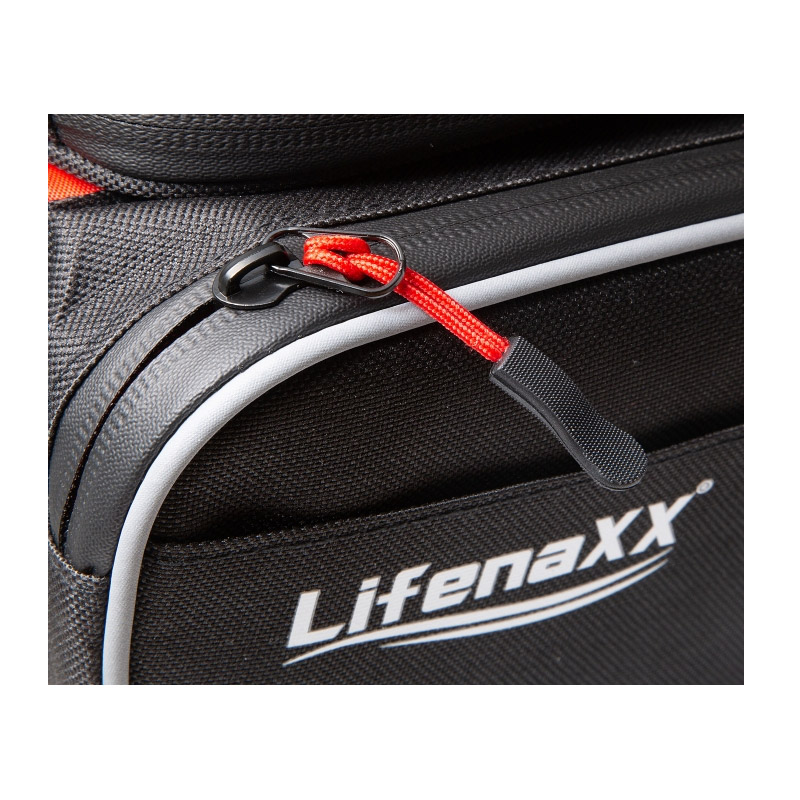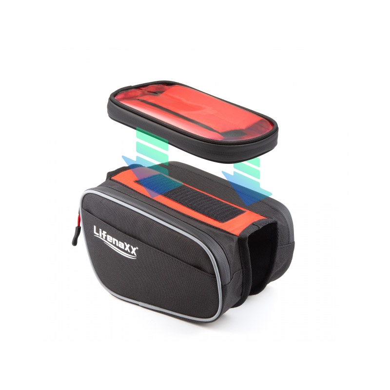 Η τσάντα, από την Lifenaxx, διαθέτει αδιάβροχη κατασκευή και τοποθετείται στο πλαίσιο του ποδήλατου. Έχει αποσπώμενη θήκη για smartphone έως 6.7″, 2 πλαϊνές θήκες με φερμουάρ και άνοιγμα για καλώδιο ακουστικών.