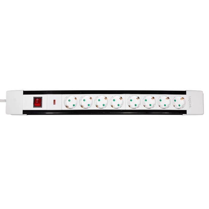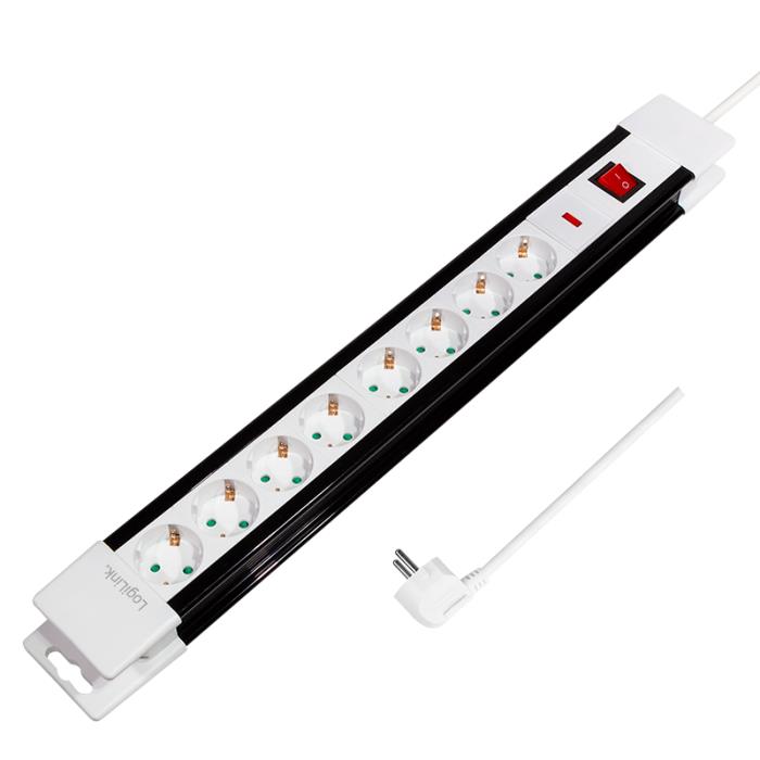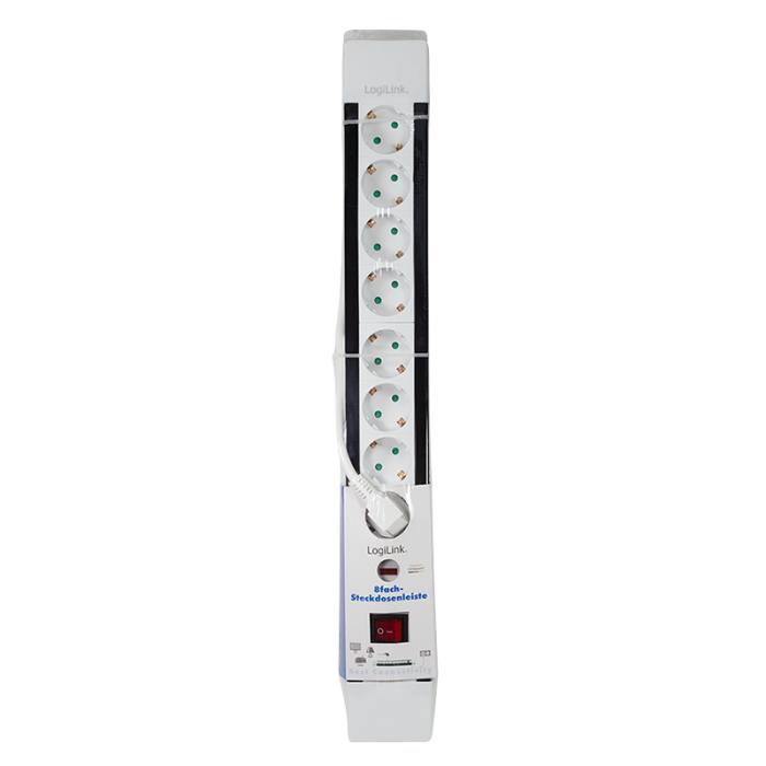 Πολύπριζο Ασφαλείας 8 Θέσεων LogiLink LPS233, με Διακόπτη 3m Λευκό