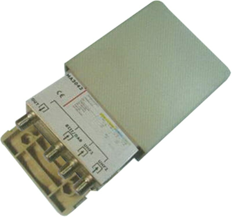 Ενισχυτής ιστού 2 εισόδων VHF 28dB, UHF 38dB, ρύθμιση κέρδους 16dB, μέγιστο σήμα εξόδου 108dBμV