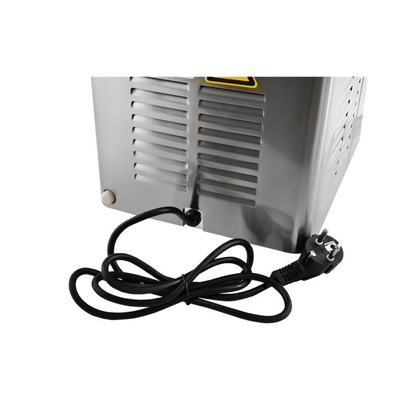 Η παγομηχανή, από την εταιρία Malatec, είναι μία συσκευή υψηλής απόδοσης, που παράγει έως και 12 Kg παγάκια την ημέρα. Τα πρώτα παγάκια (9) είναι έτοιμα μετά από 9 – 13 λεπτά από την έναρξη της λειτουργίας της. Δεν χρειάζεται άμεση σύνδεση με τρεχούμενο νερό, απλά ρίχνετε το νερό στη δεξαμενή χωρητικότητας 2.2 Lt, επιλέγετε το μέγεθος από τα παγάκια που θέλετε και μετά από λίγο χρόνο είναι έτοιμα.