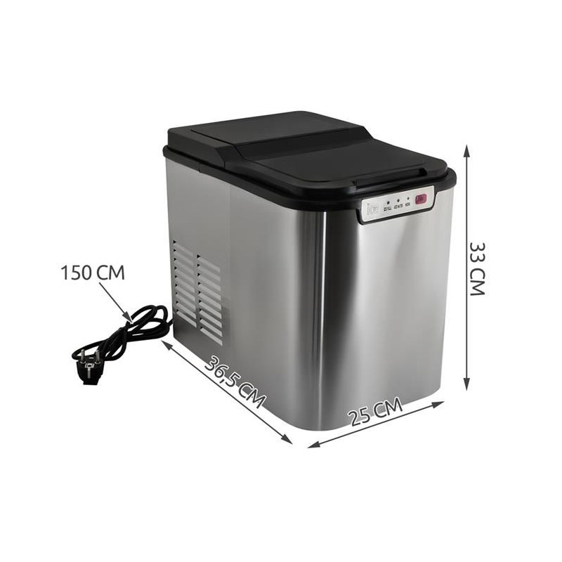 Η παγομηχανή διαθέτει παράθυρο προεπισκόπησης στο κάλυμμα, που σας επιτρέπει να την ελέγχετε, χωρίς τη διακοπή της λειτουργίας. Στη βάση της υπάρχουν μη ολισθηρά πόδια, τα οποία την καθιστούν ιδιαίτερα σταθερή. Οι λυχνίες LED της παγομηχανής, σας ενημερώνουν για την κατάσταση της συσκευής( πχ. χαμηλή στάθμη νερού, πλήρης δεξαμενή).