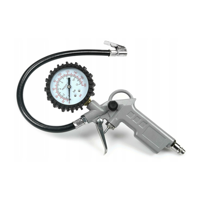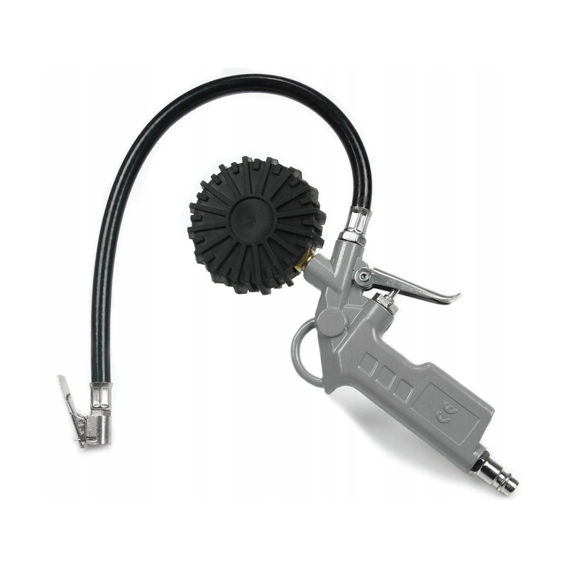 Το πιστόλι είναι εξοπλισμένο με έναν τυπικό, γρήγορο, σύνδεσμο, για εύκολη σύνδεση και χρήση και με βαλβίδα, που επιτρέπει την εξαγωγή αέρα (ξεφούσκωμα). Επιπλέον διαθέτει ένα μανόμετρο ακριβείας, το οποίο καλύπτεται με κυματοειδές καουτσούκ για προστασία από τυχόν φθορές κατά την χρήση ή την αποθήκευση και ένα ανθεκτικό, εύκαμπτο καλώδιο.