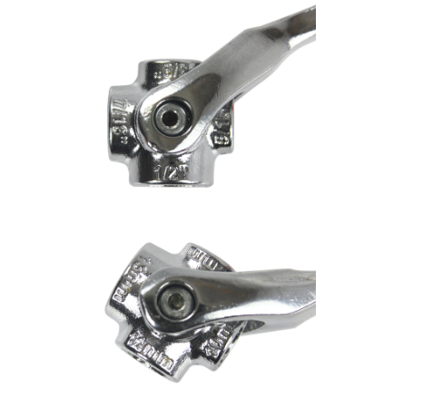 Οι περιστρεφόμενες κεφαλές με καστάνια και η λαστιχένια λαβή καθιστούν τη χρήση του πολυλειτουργικού κλειδιού εξαιρετικά άνετη – σας επιτρέπει να σφίγγετε βίδες ακόμα και σε δυσπρόσιτα σημεία.