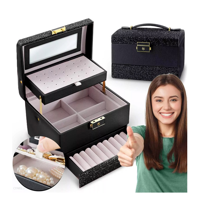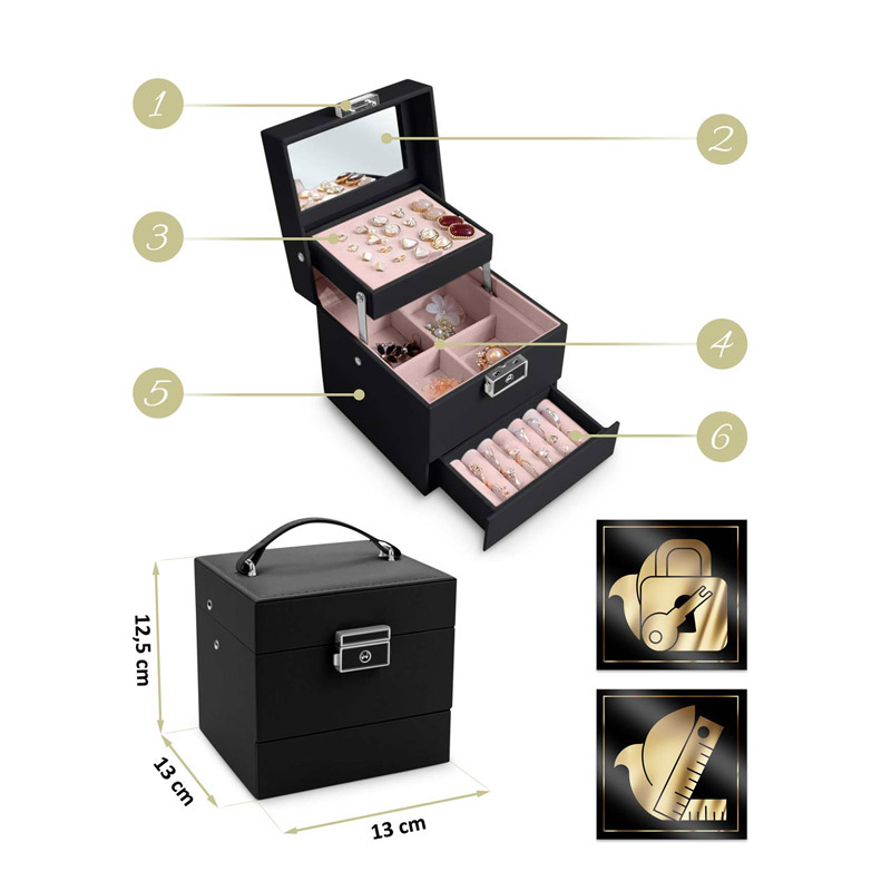 Κοσμηματοθήκη – Μπιζουτιέρα 17.5 x 13.7 x 12.5 cm Χρώματος Μαύρο Massido MS-705-Black