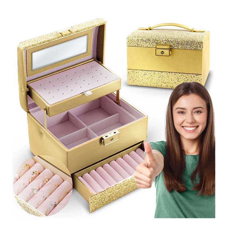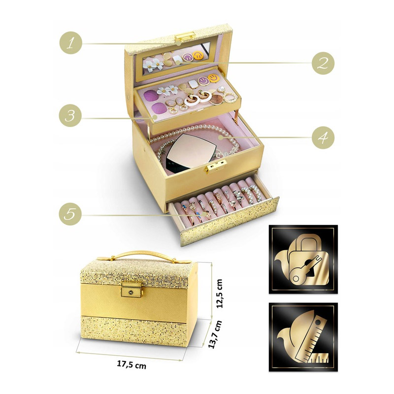 Κοσμηματοθήκη – Μπιζουτιέρα 17.5 x 13.7 x 12.5 cm Χρώματος Χρυσό Massido MS-705-Gold
