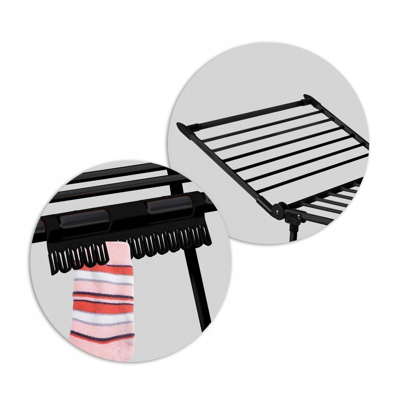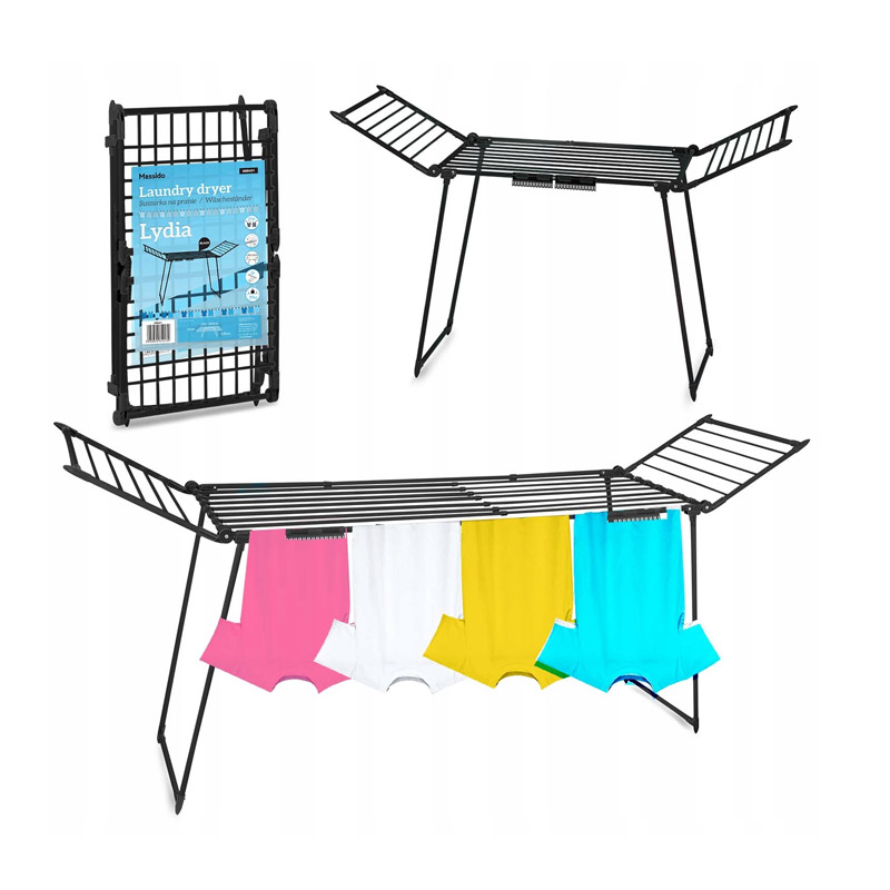 Η απλώστρα, από την εταιρία Massido, είναι κατάλληλη για εσωτερικούς αλλά και εξωτερικούς χώρους, με χώρο στεγνώματος 27 m. Διαθέτει μεγάλο χώρο στεγνώματος στο κέντρο, 2 πτυσσόμενους βραχίονες και λαβές για να στεγνώνετε τις κάλτσες, εξοικονομώντας χώρο. Χάρη στα κατάλληλα κενά μεταξύ των ράβδων, τα ρούχα στεγνώνουν γρήγορα και ομοιόμορφα.
