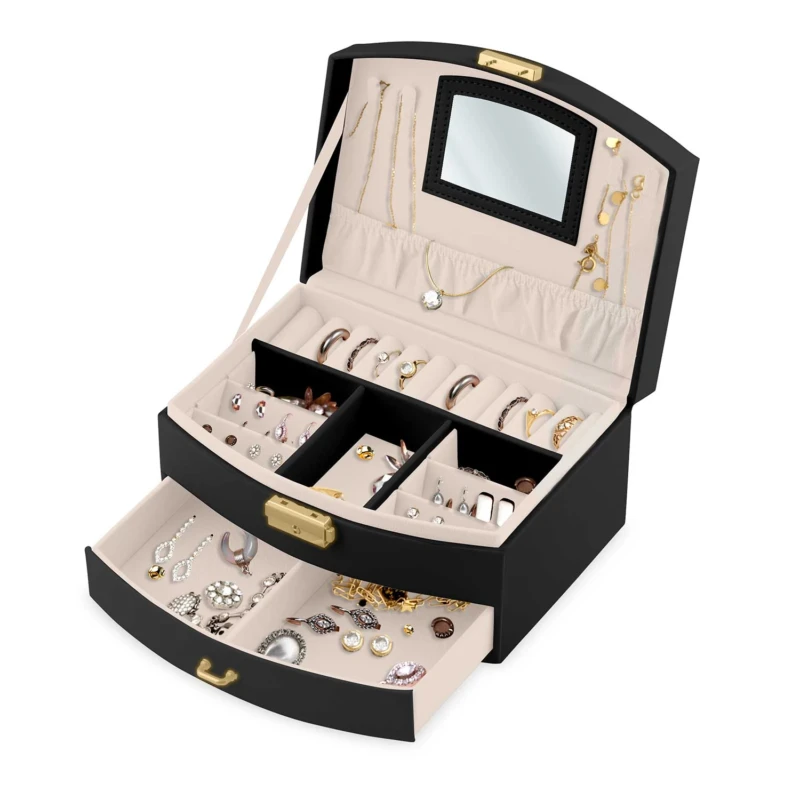 Αυτή η κοσμηματοθήκη ικανοποιεί τόσο τα κοριτσίστικα όνειρα όσο και τις γυναικείες ανάγκες. Ευρύχωρη αρκετά ώστε να είναι θησαυροφυλάκιο πρώτων κοριτσίστικων θησαυρών, και ταυτόχρονα τόσο κομψή όσο και οι ενήλικες συλλογές κοσμημάτων.