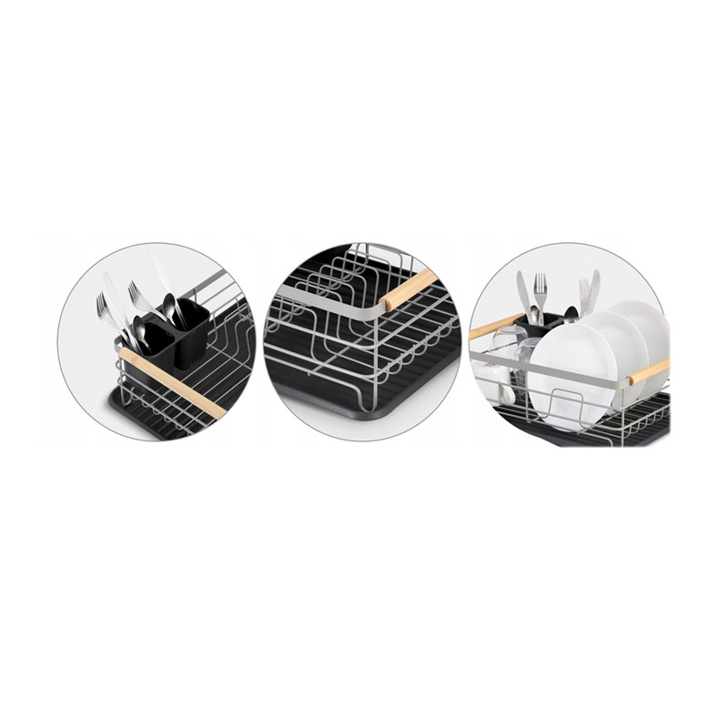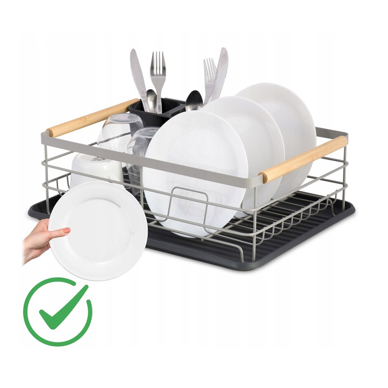 Η πιατοθήκη στεγνωτήριο, από την εταιρία Massido, διαθέτει μεταλλική κατασκευή με βαφή πούδρας, ανθεκτική στη σκουριά και στις γρατζουνιές. Οι λαβές του είναι από υψηλής ποιότητας ξύλο, γι’ αυτό συνιστάται να τα λαδώνετε με λάδι ξύλου μία φορά κάθε 4 μήνες. Περιλαμβάνει θήκη για μαχαιροπίρουνα και αφαιρούμενο δίσκο αποστράγγισης.
