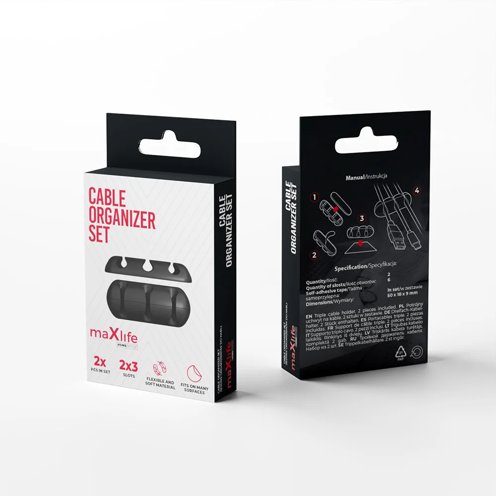 - Η σειρά Maxlife Home Office organizer είναι η καλύτερη λύση για τακτοποίηση των καλωδίων σου εκεί που θέλεις, απελευθερώνοντας το γραφείο σου από τα μπερδεμένα κουβάρια κρατώντας το χώρο καθαρό και οργανωμένο
