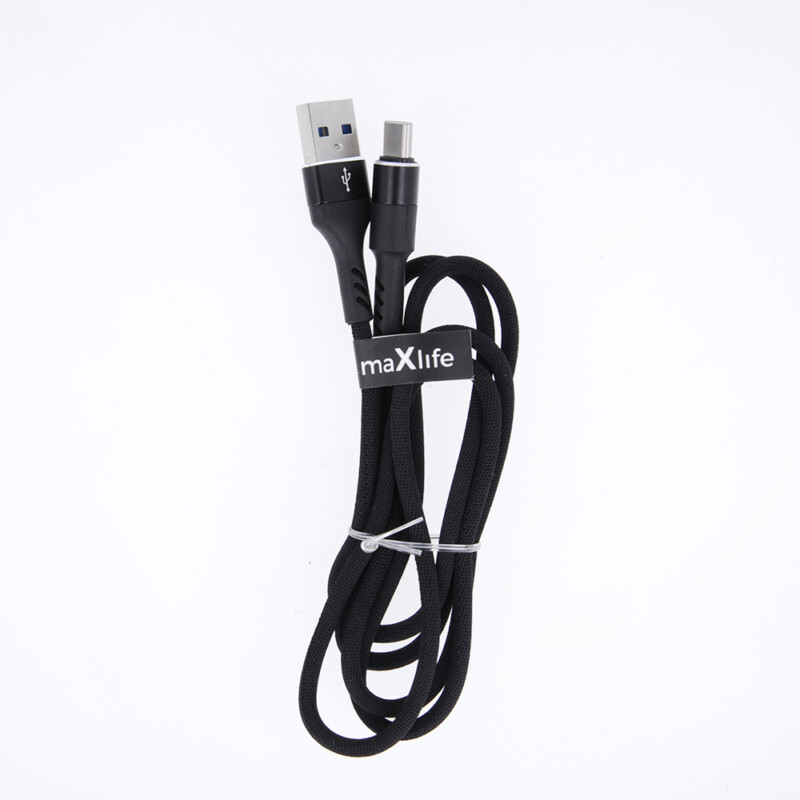 Καλώδιο φόρτισης και μεταφοράς δεδομένων από USB σε USB-C Maxlife 1 μέτρου 2A – μαύρο