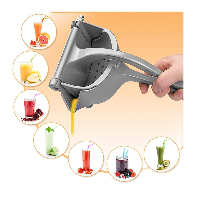 Η χειροκίνητη πρέσα φρούτων είναι κατασκευασμένη από ανθεκτικό κράμα αλουμινίου για μακροχρόνια χρήση. Διαθέτει μοχλό με μακριά λαβή ώστε να μπορείτε εύκολα και αποτελεσματικά να συμπιέσετε τα φρούτα με ελάχιστη προσπάθεια και στόμιο σε σχήμα V που σας επιτρέπει να ρίχνετε τον χυμό σε ένα ποτήρι ή άλλο δοχείο χωρίς να χυθούν σπόροι ή πολτός.