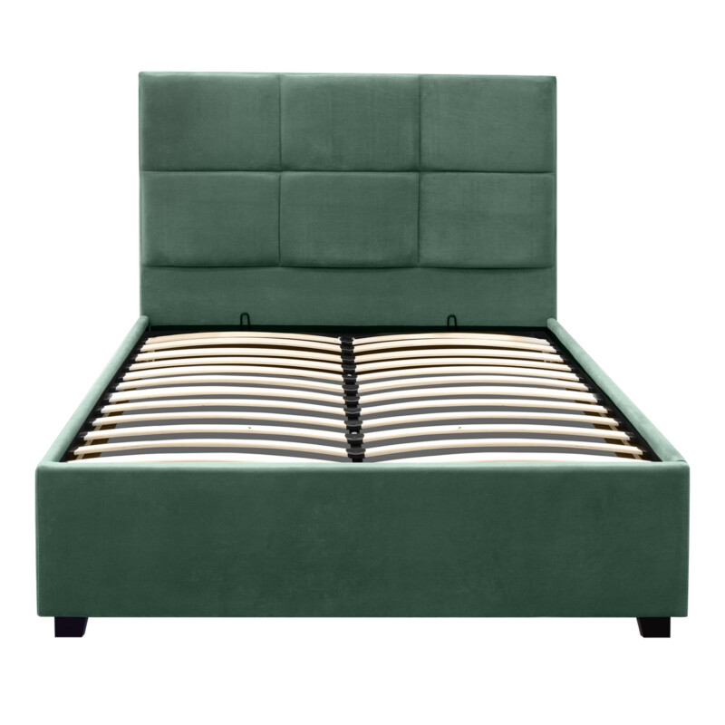 Κρεβάτι Kingston Megapap βελούδινο με αποθηκευτικό χώρο χρώμα κυπαρισσί 120×200εκ.