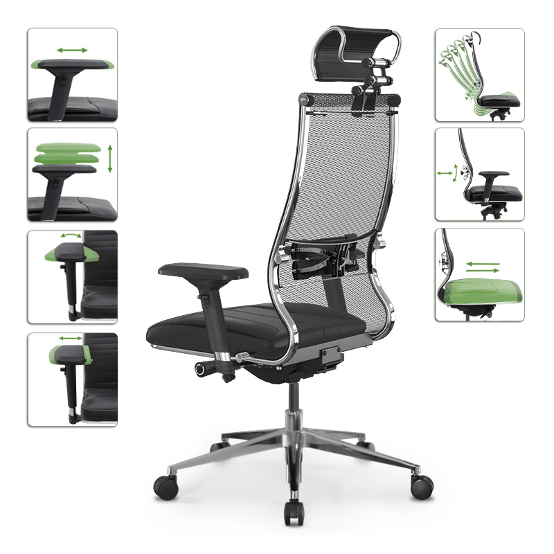 - Με 3D ατσάλινο μηχανισμό υποστήριξης της οσφυϊκής περιοχής που συμφωνεί με το ανατομικό σχήμα του ανθρώπινου σώματος.