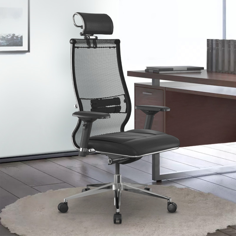 Καρέκλα γραφείου Samurai L2-6D Megapap εργονομική με ύφασμα TS Mesh και τεχνόδερμα χρώμα μαύρο 69x70x125/137εκ.
