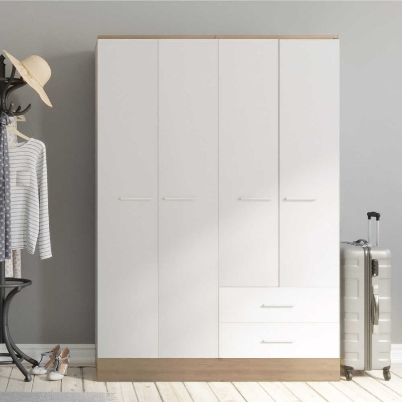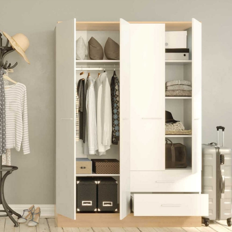 Ντουλάπα ρούχων Base Megapap τετράφυλλη με συρτάρια χρώμα λευκό – sonoma 137x52x198εκ.