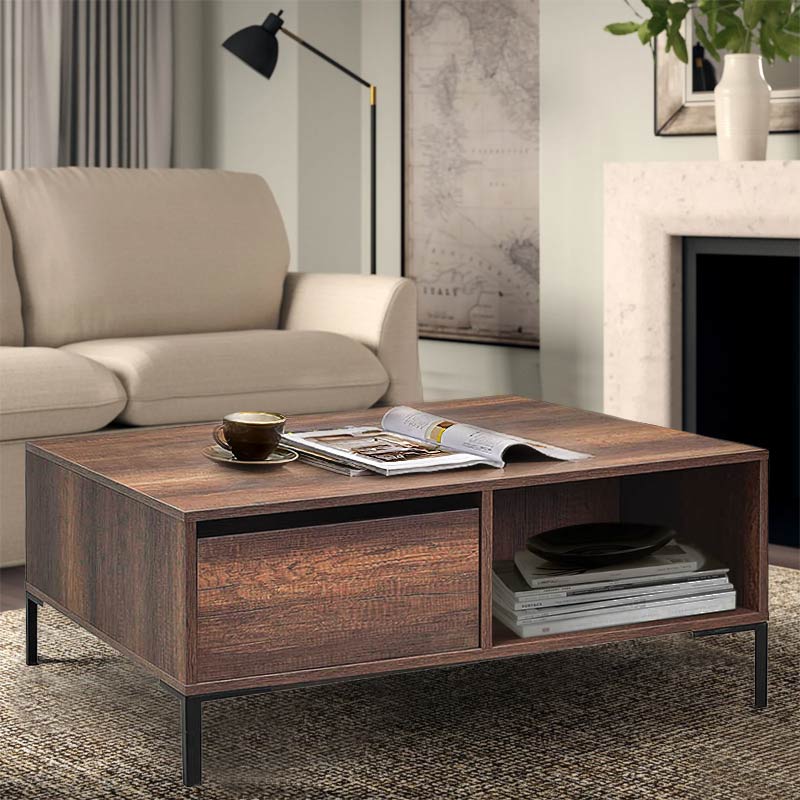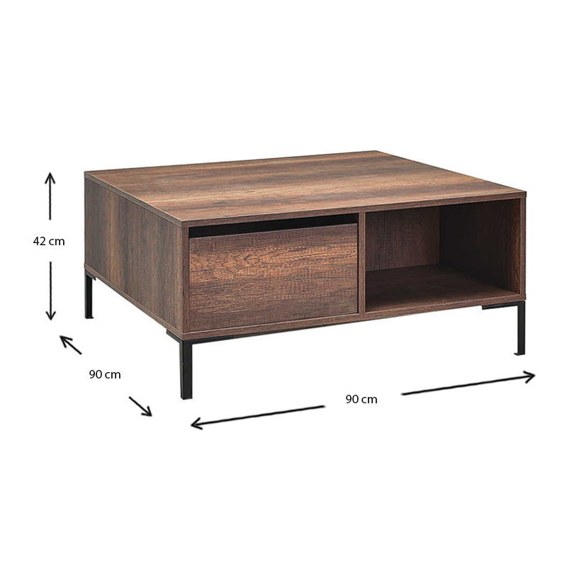Τραπεζάκι σαλονιού Slide Megapap από μελαμίνη χρώμα καρυδί 90x90x42εκ.