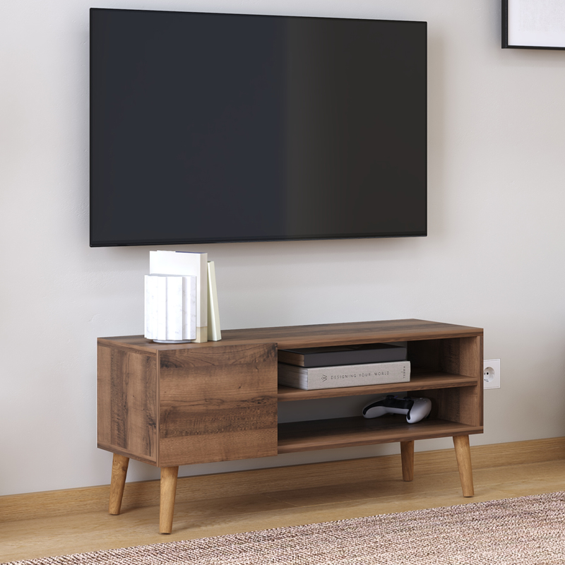 Έπιπλο τηλεόρασης Porto Megapap από μελαμίνη χρώμα καρυδί 90x32x42εκ.