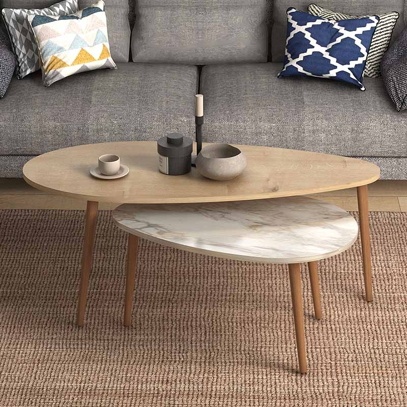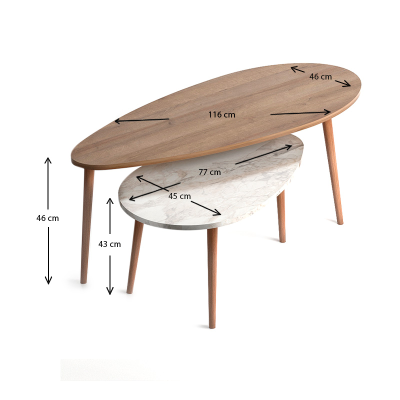 Βοηθητικά τραπεζάκια Elips Megapap από μελαμίνη χρώμα oak – μπεζ εφέ μαρμάρου 116x46x46εκ.