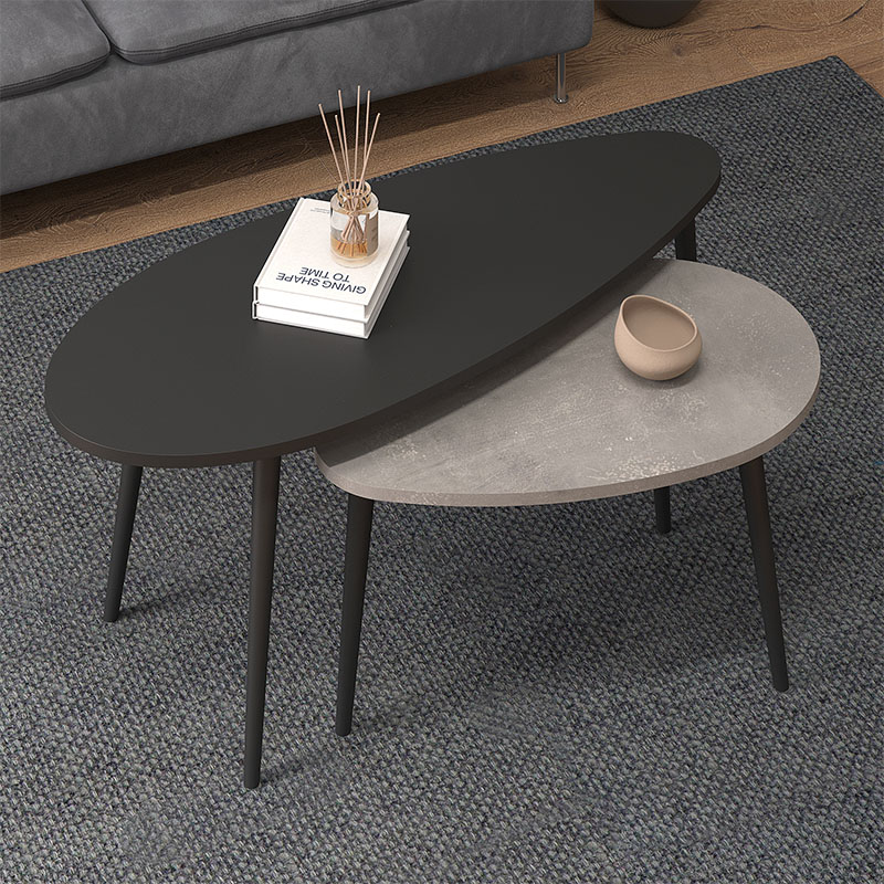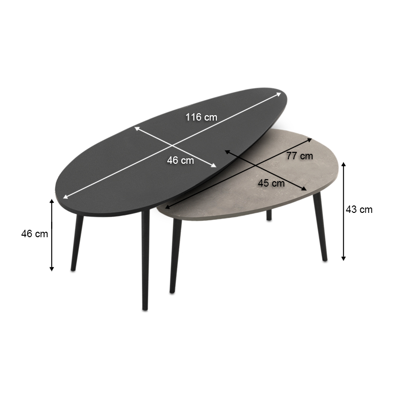 Τραπεζάκι σαλονιού σετ 2 τμχ Elips Megapap χρώμα μαύρο – γκρι ρετρό 116x46x46εκ.