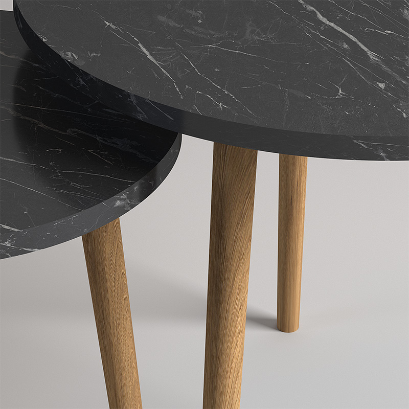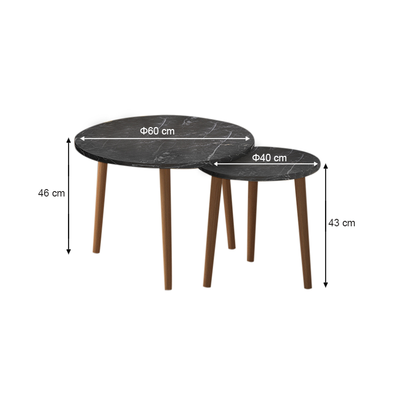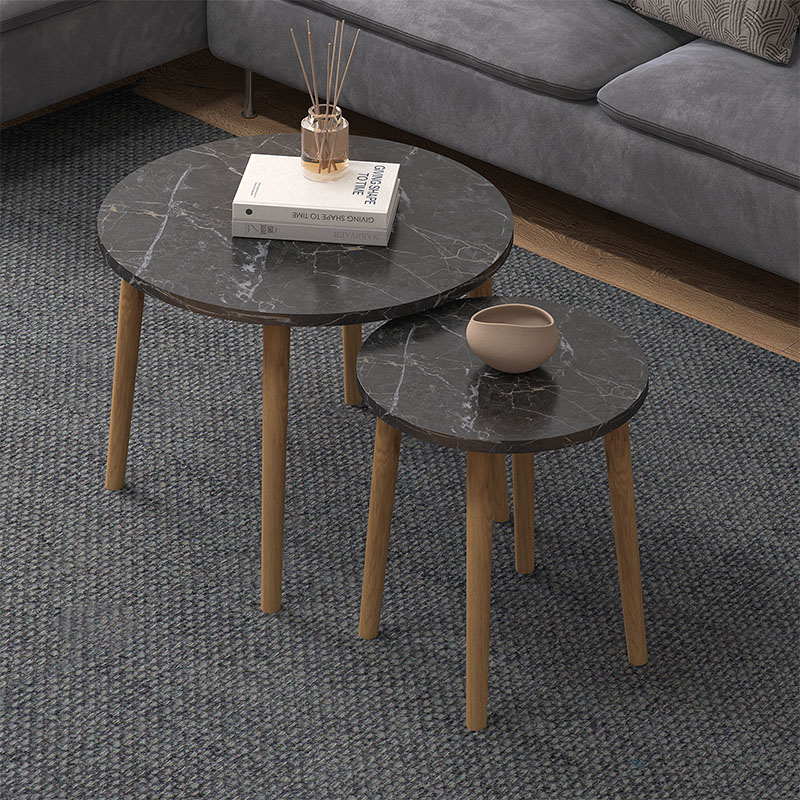 Τραπεζάκι σαλονιού σετ 2 τμχ Roma Megapap χρώμα μαύρο εφέ μαρμάρου 60x60x46εκ.