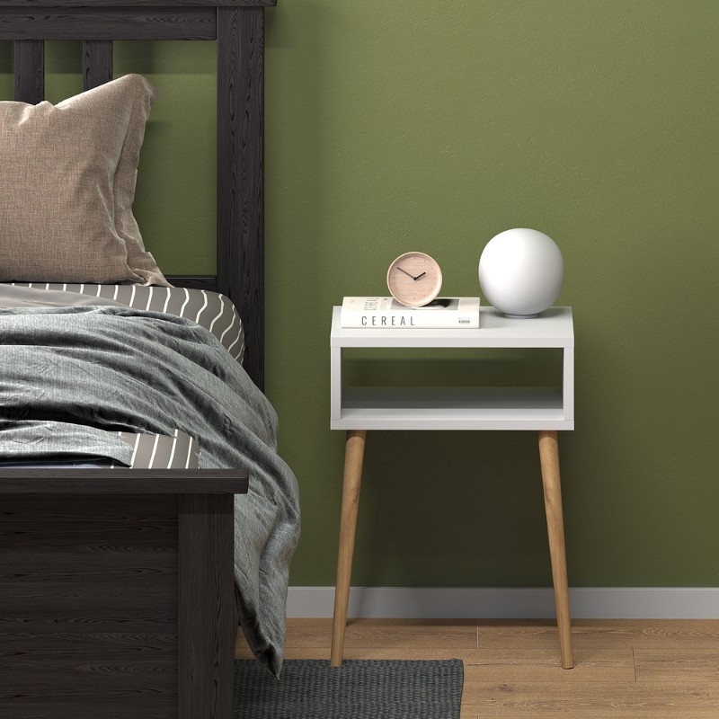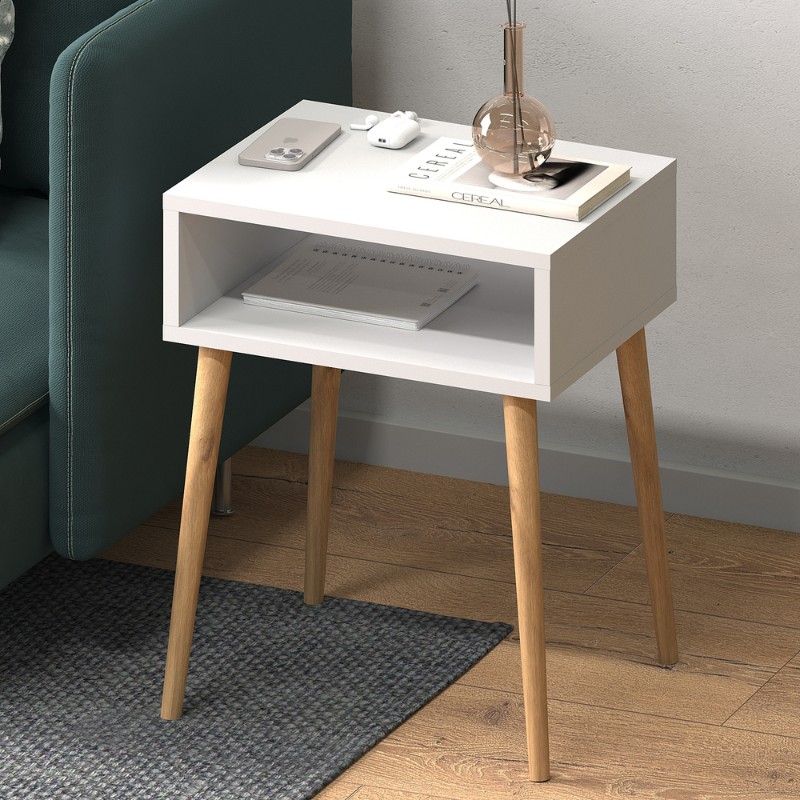 - Εκτός από την επιφάνειά του, όπου μπορείτε ν’ ακουμπήσετε ό,τι επιθυμείτε, το κομοδίνο φέρει κι ένα ράφι ακριβώς κάτω από αυτήν.