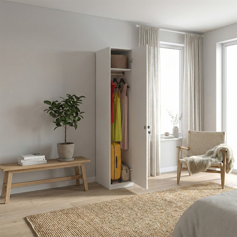 Ντουλάπα ρούχων Emeril Megapap μονόφυλλη με κλειδαριά χρώμα λευκό 35x42x180εκ.