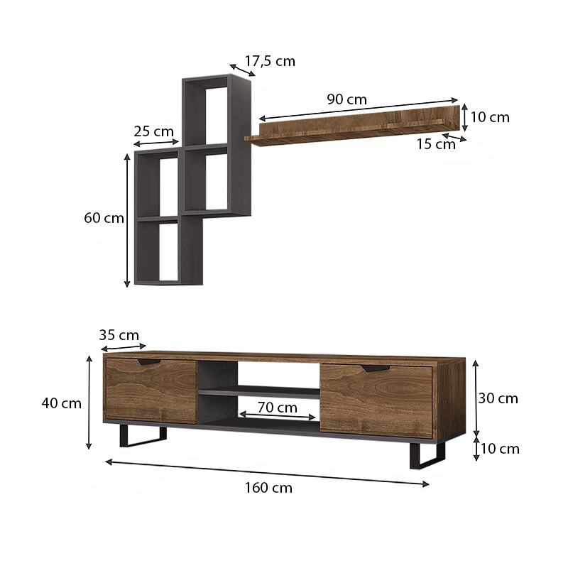 Σύνθεση τηλεόρασης Lonsa Megapap χρώμα καρυδί – ανθρακί 160x35x40εκ.