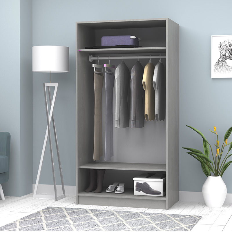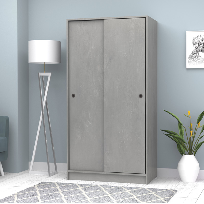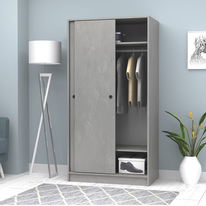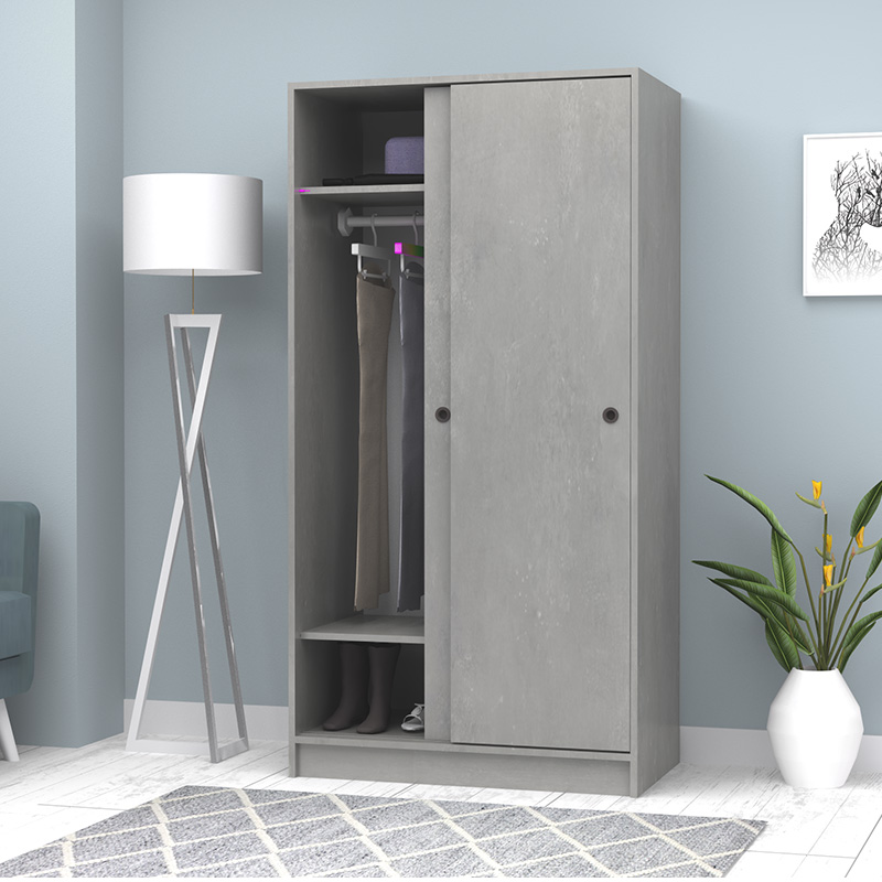 Ντουλάπα ρούχων Misra Megapap δίφυλλη συρόμενη χρώμα γκρι σκυροδέματος 94x52x182εκ.