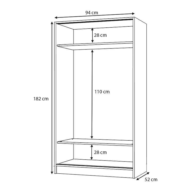 - Διαστάσεις: Μήκος 94 x Βάθος 52 x Ύψος 182 εκ.