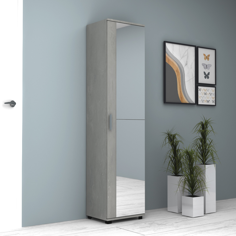 Ντουλάπα ρούχων – παπουτσοθήκη Visla Megapap μονόφυλλη με καθρέπτη χρώμα γκρι σκυροδέματος 45x36x187εκ.