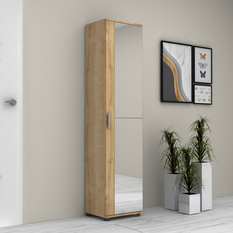 Ντουλάπα ρούχων – παπουτσοθήκη Visla Megapap μονόφυλλη με καθρέπτη χρώμα φυσικό οξιάς 45x36x187εκ.
